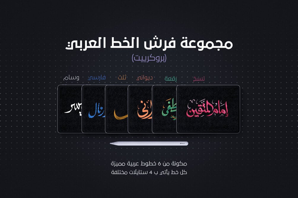 مجموعة فرش الخط العربي ل 6 خطوط عربية ب 4 ستايلات مختلفة
